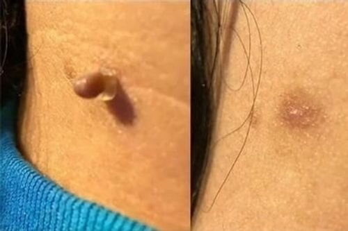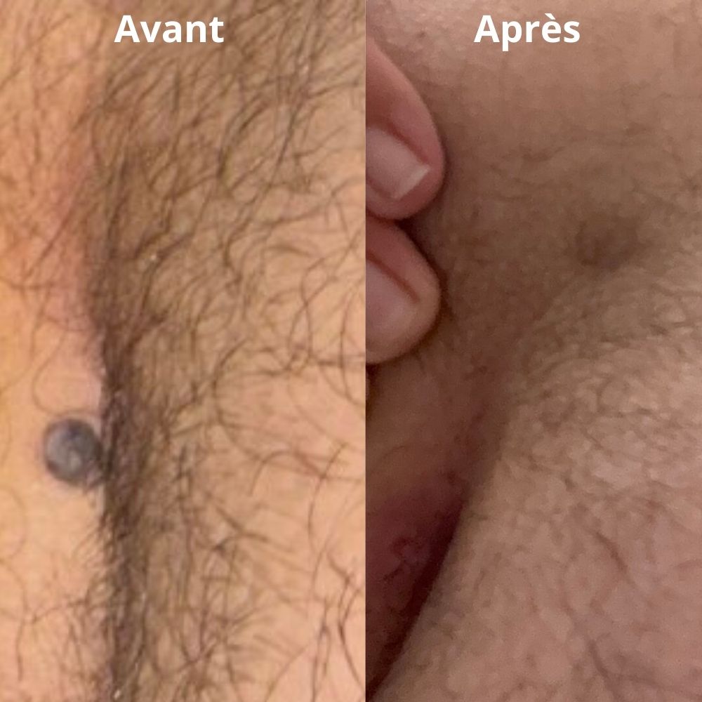 Sur de gros skin tags, une légère marque temporaire peut rester quelques jours.